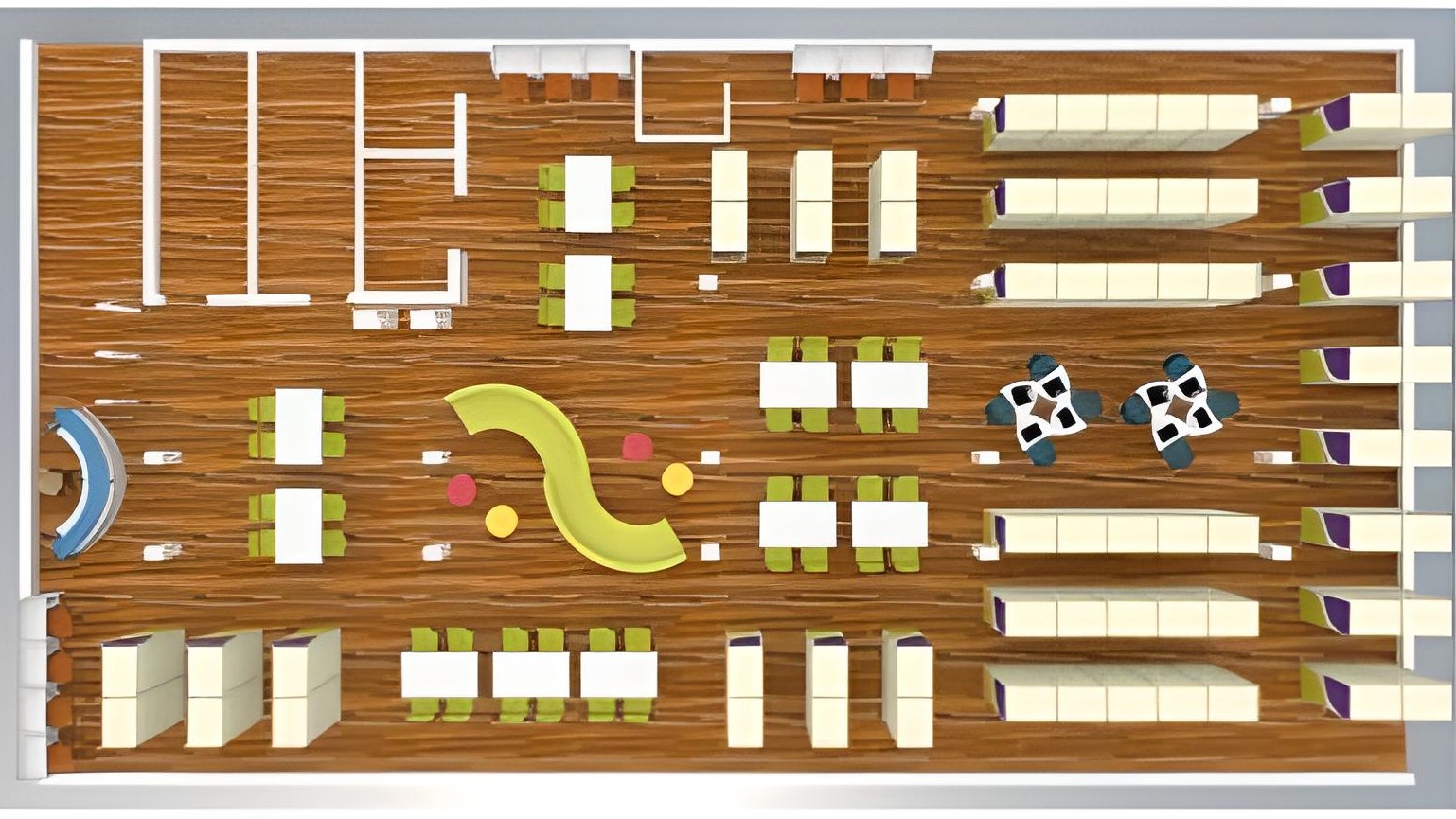 Combinación de estética con funcionalidad, con solo un plano de sus instalaciones nuestro equipo de profesionales creará una nueva imagen de su biblioteca a través de planos isométricos y renders 3D.
